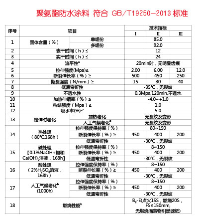 聚氨酯防水涂料是由异氰酸酯、聚醚等经加成聚合反应而成的含异氰酸酯基的预聚体,配以催化剂、无水助剂、无水填充剂、溶剂等,经混合等工序加工制成的单组分聚氨酯防水涂料。该类涂料为反应固化型(湿气固化)涂料、具有强度高、延伸率大、耐水性能好等特点。对基层变形的适应能力强。聚氨酯防水涂料是一种液态施工的单组分环保型防水涂料,是以进口聚氨酯预聚体为基本成份,无焦油和沥青等添加剂。它是空气中的湿气接触后固化,在基层表面形成一层坚固的坚韧的无接缝整体防膜。